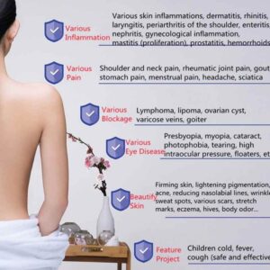 Purifying the Blood: By holding the “Blue Light” on your navel, pointing towards the spine, for 21 minutes you expose all the blood in your body to the healing light, adjust heat to your preference. During the therapy: declare that “Royal Blood Now Flows Through My Veins.